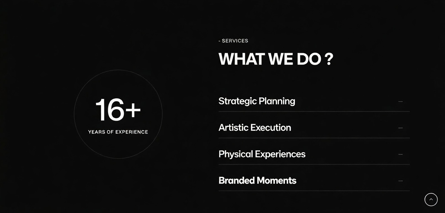 We align creative vision, team, and execution—shaping brilliance at every stage of the process. We pursue perfection through relentless attention to detail and long-term stewardship, ensuring that excellence is not a one-time achievement but a sustained commitment. We rethink boldly—delivering fresh, boundary-pushing solutions that move the needle and drive meaningful impact. Above all, we say it and we do it: every promise is met with unwavering honesty and accountability, building trust and delivering results that stand the test of time.